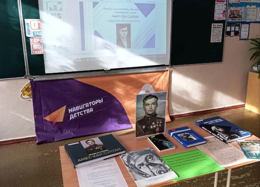 В рамках портрета была представлена презентация «Мечты о небе», в которой отражены ключевые моменты жизни летчика и его боевые достижения. Также была организована тематическая полка с литературой о героической эпохе и произведениями об Амет-Хане Султане.