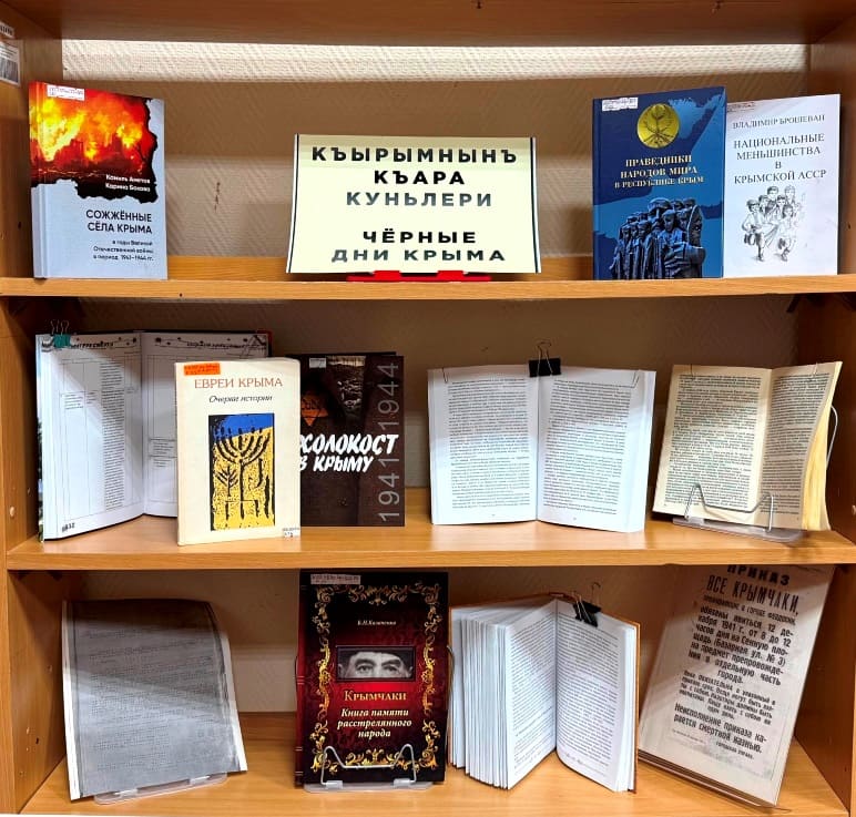 Специалисты библиотеки подготовили к мероприятию тематическую книжную выставку «Чёрные дни Крыма», в которую вошли рассекреченные архивные материалы, книги воспоминаний выживших, труды крымских исследователей и художественные произведения.