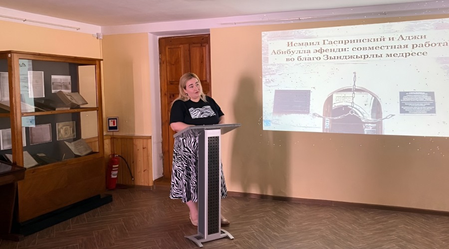 В рамках круглого стола, посвященного общим проблемам сохранения, изучения, популяризации и перспективам развития объекта культурного наследия федерального значения «Зынджырлы медресе», специалистом отдела редких книг, рукописных и архивных материалов библиотеки был проведен обзор-доклад «Исмаил Гаспринский и Аджи Абибулла эфенди: совместная работа во благо Зынджырлы медресе».